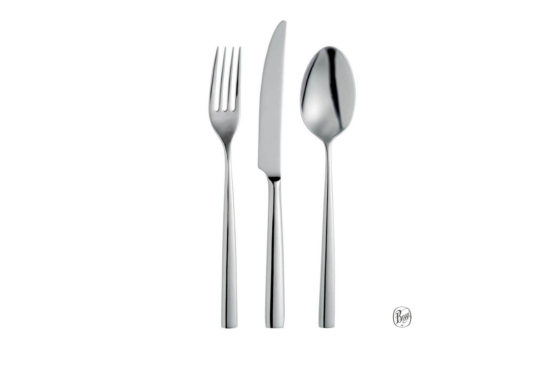Вся продукция, несущая на себе логотип Broggi, производятся из хромо-никелевой стали с 18 процентным содержанием хрома и 10 процентным содержанием никеля. Хром придает ей прочность, блеск и устойчивость к коррозии, а никель защищает сплав от агрессивного воздействия пищевых кислот. Кроме того, некоторые изделия дополнительно покрываются слоем серебра, которое подчеркивает изысканный стиль и великолепное качество исполнения каждого ножа, ложки или кофейника.